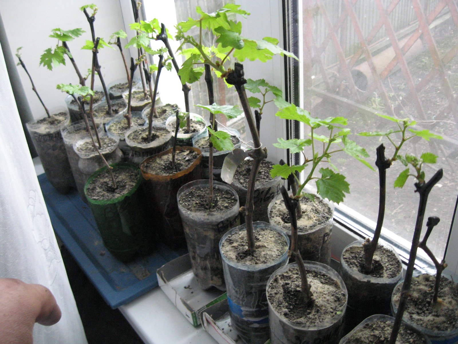 Немного подросший виноград, который можно пересаживать в открытый грунтПересадка в открытый грунт и уход за лозой