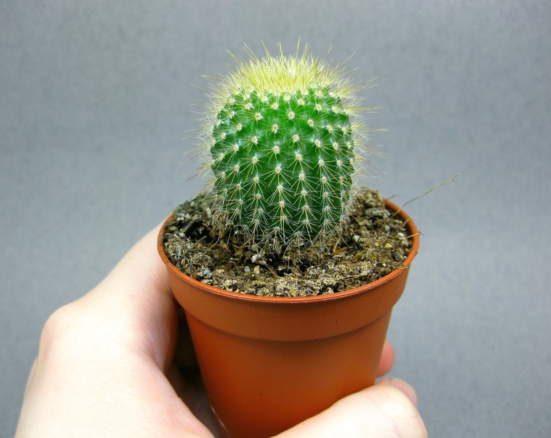 Это также мелкорастущий кактус с максимальной высотой 4 дюйма и диаметром 6 дюймов. Он примечателен своим большим желтым цветком с темно-желтым центром весной. В отличие от других кактусов, ему требуется больше воды и меньше солнца.