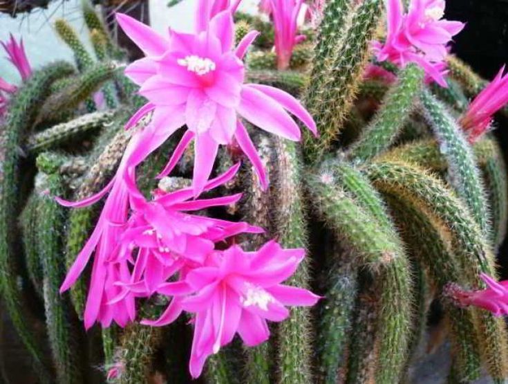 Апорокактус плетевидный (Aporocactus flagelliformis) легко выращивать. Его стебли толщиной 1 см вырастают на несколько сантиметров в год, а весной появляются цветки диаметром 8 см. Подходит для подвесных корзин.