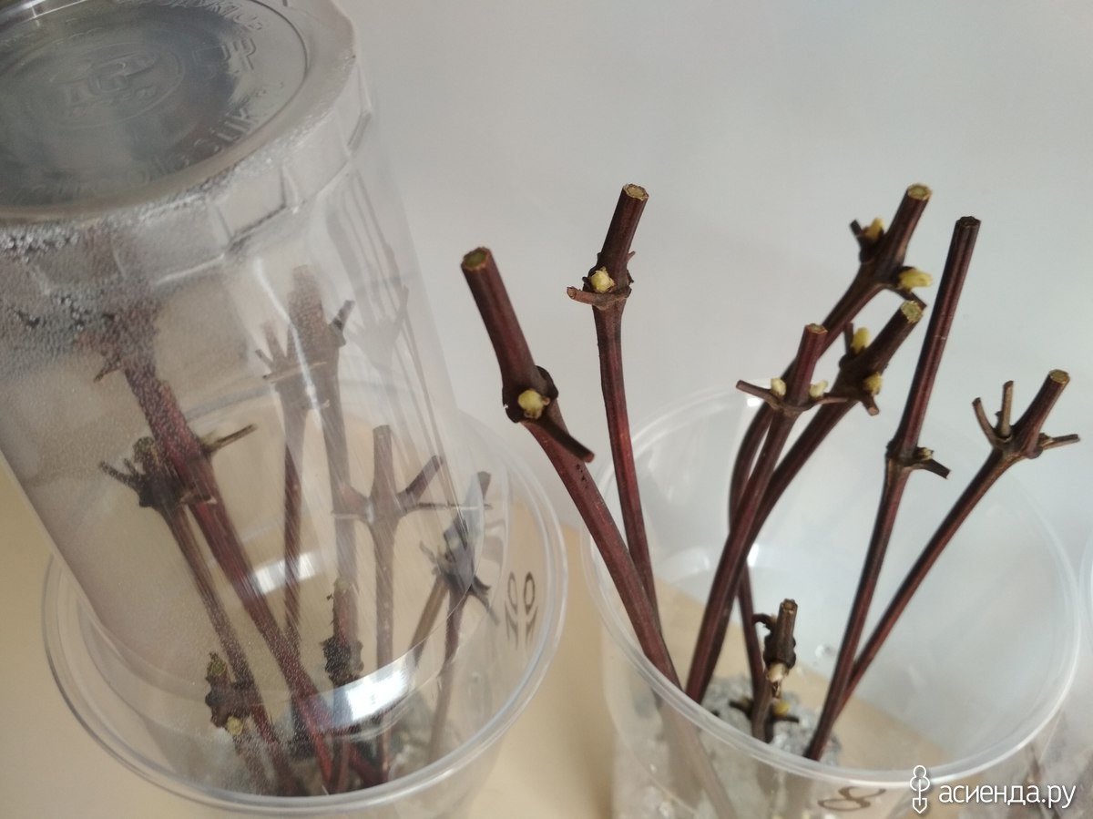 Срезанные черенки помещают в ёмкость, наполненную раствором «Эпина» или «Корневина». Эти препараты являются стимуляторами роста и отлично зарекомендовали себя при самостоятельном размножении деревьев и кустарников. Благодаря препаратам молодые растения быстрее пускают корешки и лучше приживаются на новом месте. Температура воздуха во время проращивания должна быть не меньше +25 градусов, так как в более холодных условиях отрастание корешков значительно замедляется.