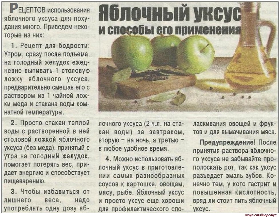 Применяется яблочный уксус разными образами. Вот несколько советов:
