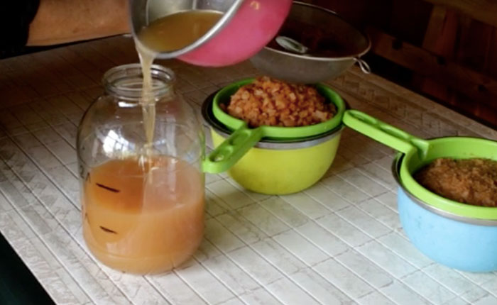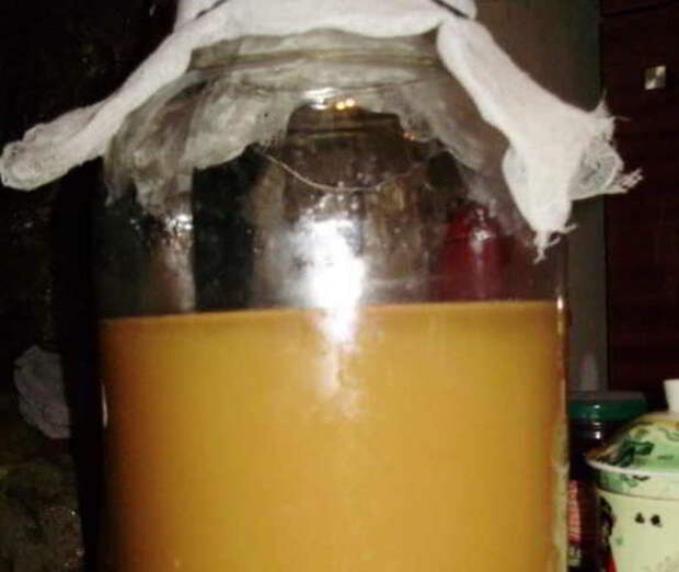 Примерно 2 раза в сутки его нужно помешивать деревянной ложкой или просто чистой палочкой. Через 10 дней яблочную кашицу перекладывают в мешочек из марли и процеживают в другую банку, закрывают ее марлей и оставляют для последующего брожения.