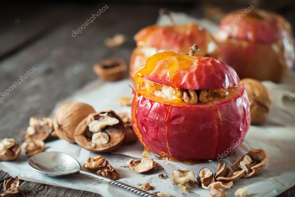 Яблоки запеченные с медом и орехами: Запеченные яблоки с орехами, изюмом, медом и корицей