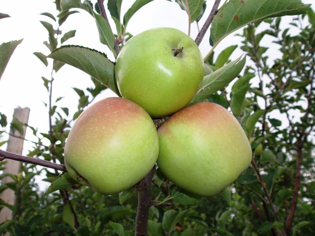 Несущее яблоко. Сорт яблонь, подходящий для Северо-Запада. В этом регионе наблюдается его высокая урожайность, несмотря на холодную зону. Плоды крупные, с точками на поверхности зеленой кожуры.