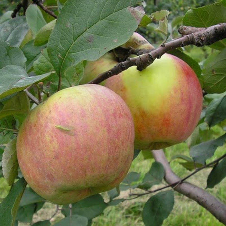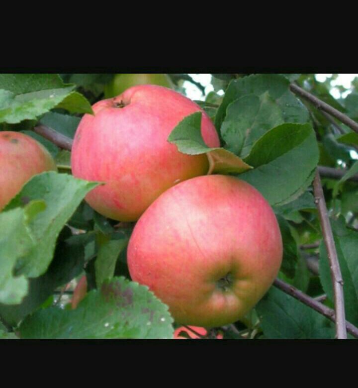 Ароматное яблоко. Дерево крепкое, высокое, с густой кроной.Плоды крупные, продолговатые, с ярко выраженными ребрами. Их можно будет собрать к концу августа.