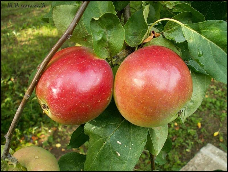 Однако сорт не будет плодоносить без опылителей (Мелба, Папировка). Зиму деревья переносят хорошо, не вымерзают. Яблоки имеют вес около 100 г, они круглые, зеленоватые с тёмно-красными полосами. Кремовая кисло-сладкая мякоть очень сочная;