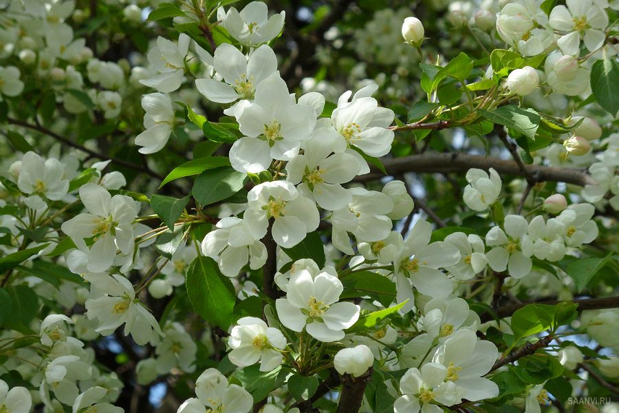- Китайки, ранетки и сибирки имеют белые цветки на очень длинных цветоножках