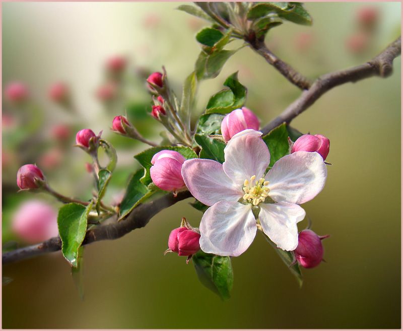 У классического цветка яблони 5 лепестков, декоративные сорта с махровыми цветками в наших странах встречаются редко, хотя в Китае они вполне обычны.