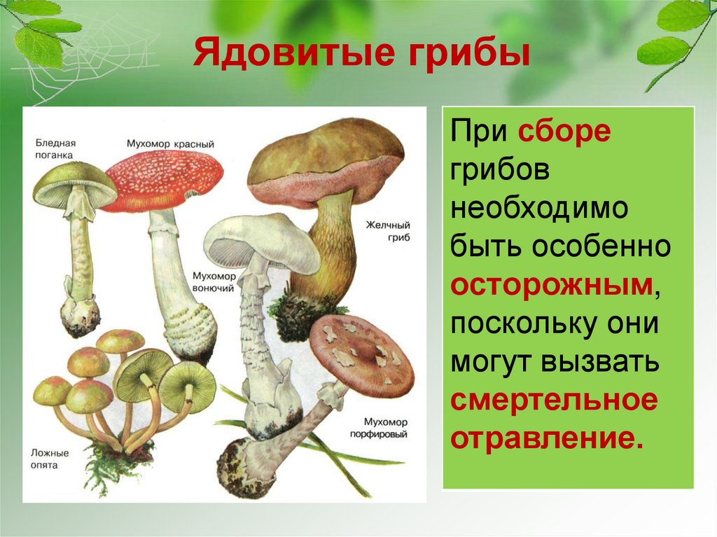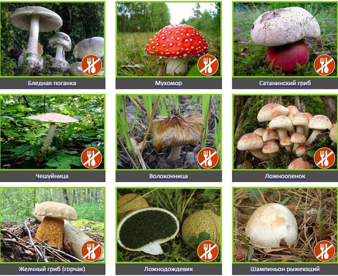 Ядовитые грибы: названия, фото, описания