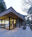 Автомобильное движение в этом поселке запрещено — дорог здесь не предусмотрено. Вдоль узкой асфальтированной дорожки, затененной живой изгородью, смирно стоят небольшие модернистские домики. Окна каждой постройки выходят на соседский двор: так советские архитекторы заставляли больших дядей с тяжелыми погонами следить друг за другом во избежание заговоров. Посреди этих строгих генеральских дач выделяется аккуратный дом с фасадом из дерева, стекла и бетона. Поговорили с его создателями.Идея
