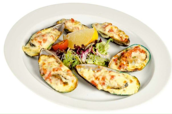Мидии, запеченные в духовке (в раковинах, с сыром, под сливочным соусом)