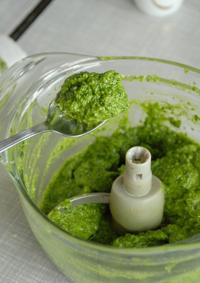 Песто может делаться на основе любой свежей зелени, но традиционный итальянский рецепт — использование именно базилика, и в большом количестве.