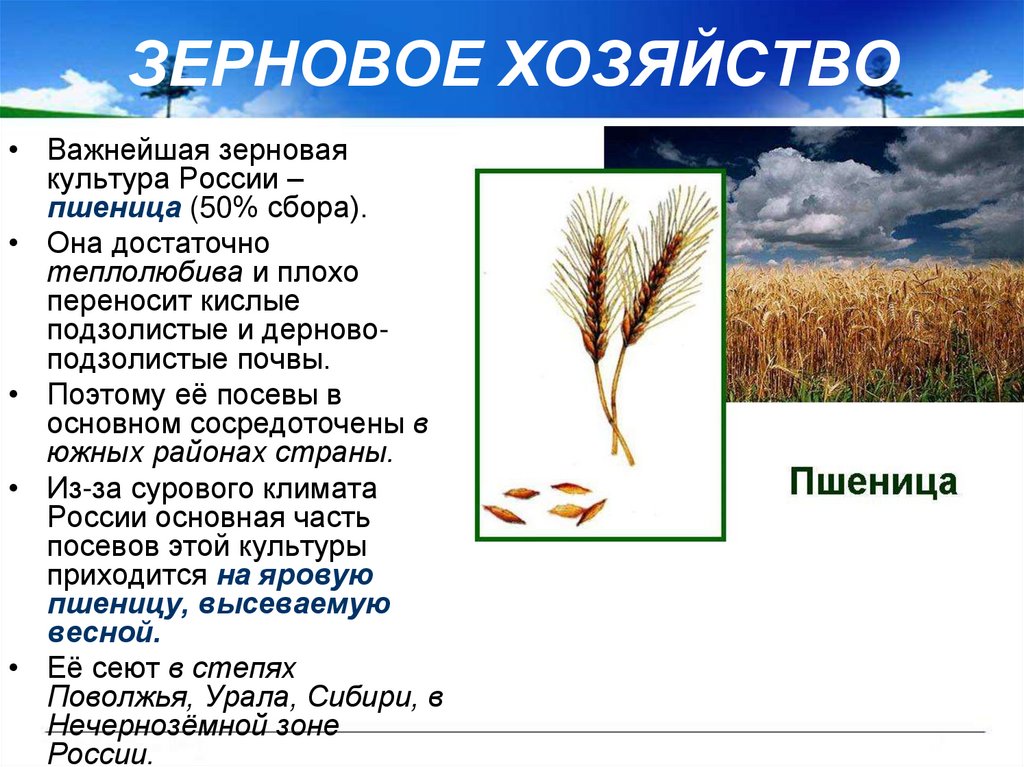 Благодаря разнообразию видов, сортов и форм, культуры могут произрастать в различных климатических зонах. По этой причине концентрация зерновых на тяжелых и легких почвах одинакова, но урожайность существенно различается.