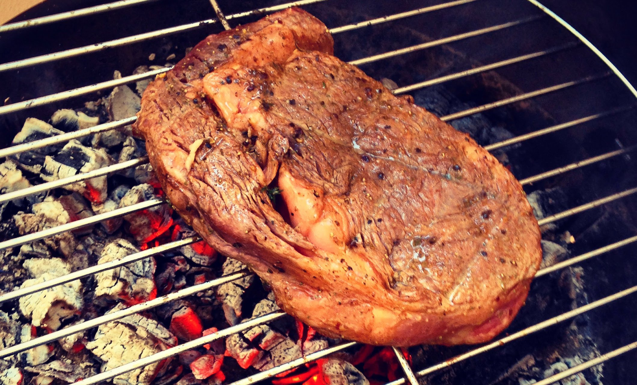 Рецепт: Стейк Портерхаус с розмарином и чесноком на гриле