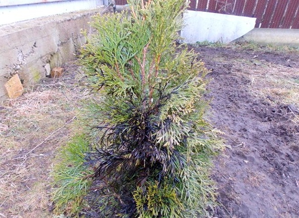 Если ты заметил, что кора легко отрывается, а под ней ходы и отверстия, значит, постарались стволовые вредители. Самый распространенный из них — туевый лубоед. Чтобы избавиться от этих насекомых, нужно в мае-июне обработать растения инсектицидами.