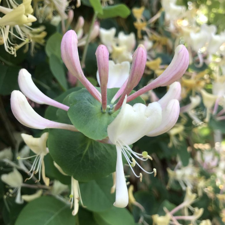 Жимолость каприфоль, цветы вблизи