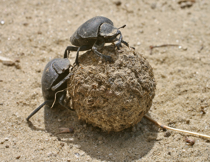 Навозные жуки — и есть такая система. Они самыми разными способами перерабатывают навоз, откладывают в него яйца, их личинки питаются им — в общем, круговорот помета в природе поддерживается, но без превращения нашего мира в помойку.