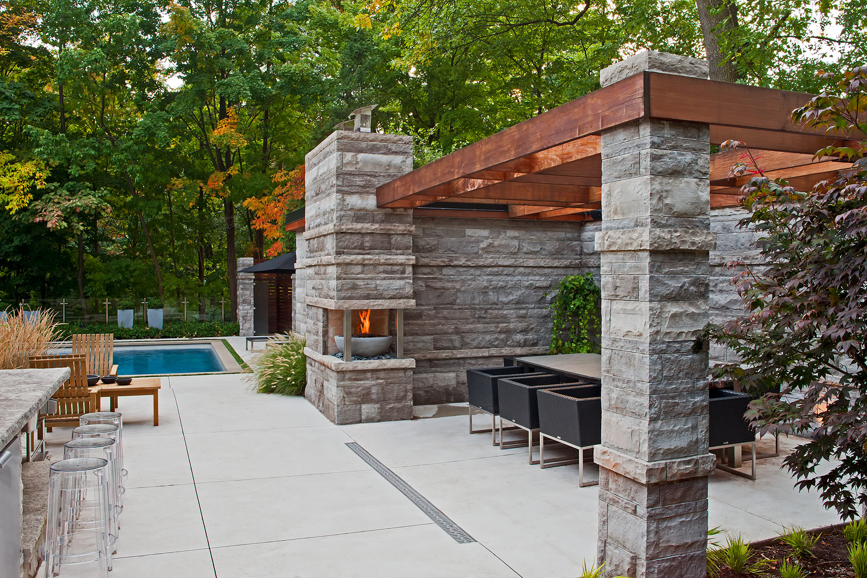 Подобные зоны обустраиваются с помощью металлических или деревянных каркасов, которые могут быть сборными или переносными; - патио – комната под открытым небом, ограждениями которой служат стены прилегающих зданий (дом, придомовые и хозяйственные постройки). Это уединенное и скрытое от посторонних глаз место, которое можно при желании обустроить любым видом очага и навесом.