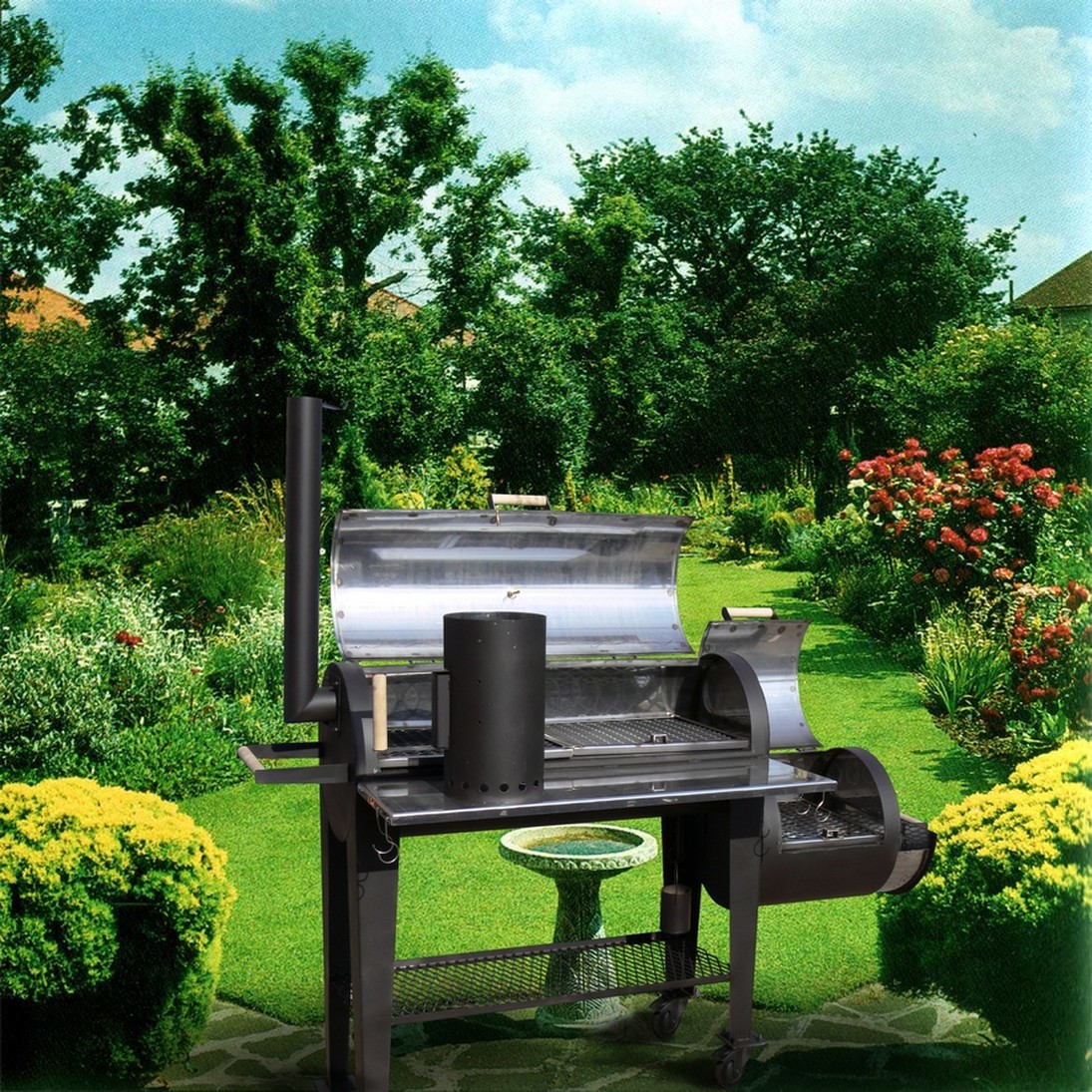 Выложить его их огнеупорного или шамотного кирпича даже самостоятельно несложно, а возможности открываются широкие: кроме традиционных блюд из мяса, птицы и рыбы, можно будет печь хлеб, при этом расход угля или дров будет минимальным; - барбекю на сегодняшний день является самым функциональным, удобным и популярным способом приготовления мяса, рыбы и овощей на природе. Приготовление осуществляется с помощью решетки, на которую кладут продукты, ее высоту можно регулировать. Компактные переносные барбекю прямоугольной или круглой формы пригодятся в тех случаях, когда пикники устраиваются от случая к случаю: такие модели имеют малый вес, просты в эксплуатации, легко разбираются, но урезаны в функциональности. Стационарные барбекю напоминают садовые печи, но они оснащены жаровнями с решетками для запекания, их положение можно регулировать. Для их строительства используют огнеупорный кирпич. Как правило, в конструкции стационарного барбекю есть заслонки, с помощью которых можно регулировать приток свежего воздуха.