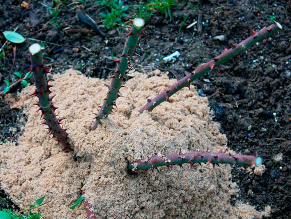 При использовании земли для создания насыпей роз, некоторые производители испытывают проблемы с появлением грибка на основных стеблях.
