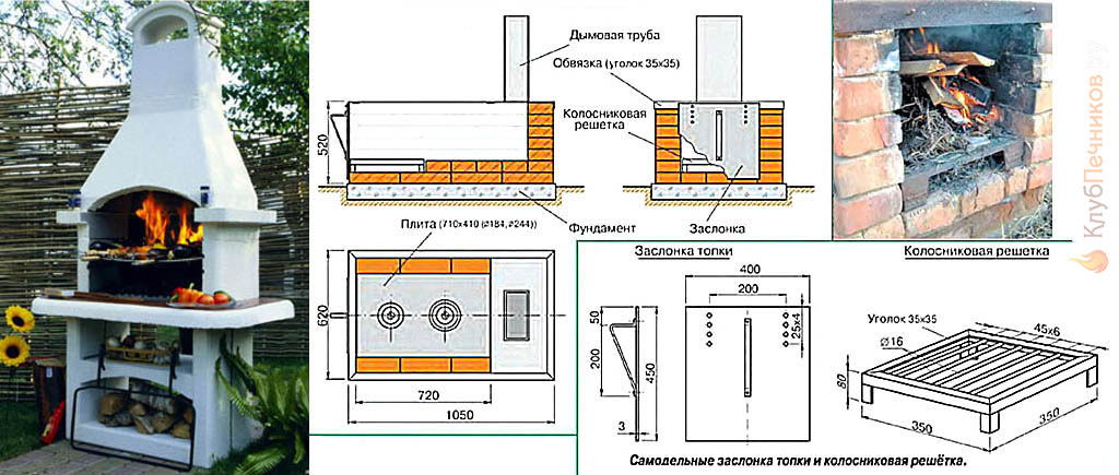 проекты, чертежи, фото печки, как построить камин с грилем и мангалом на улице, схемы