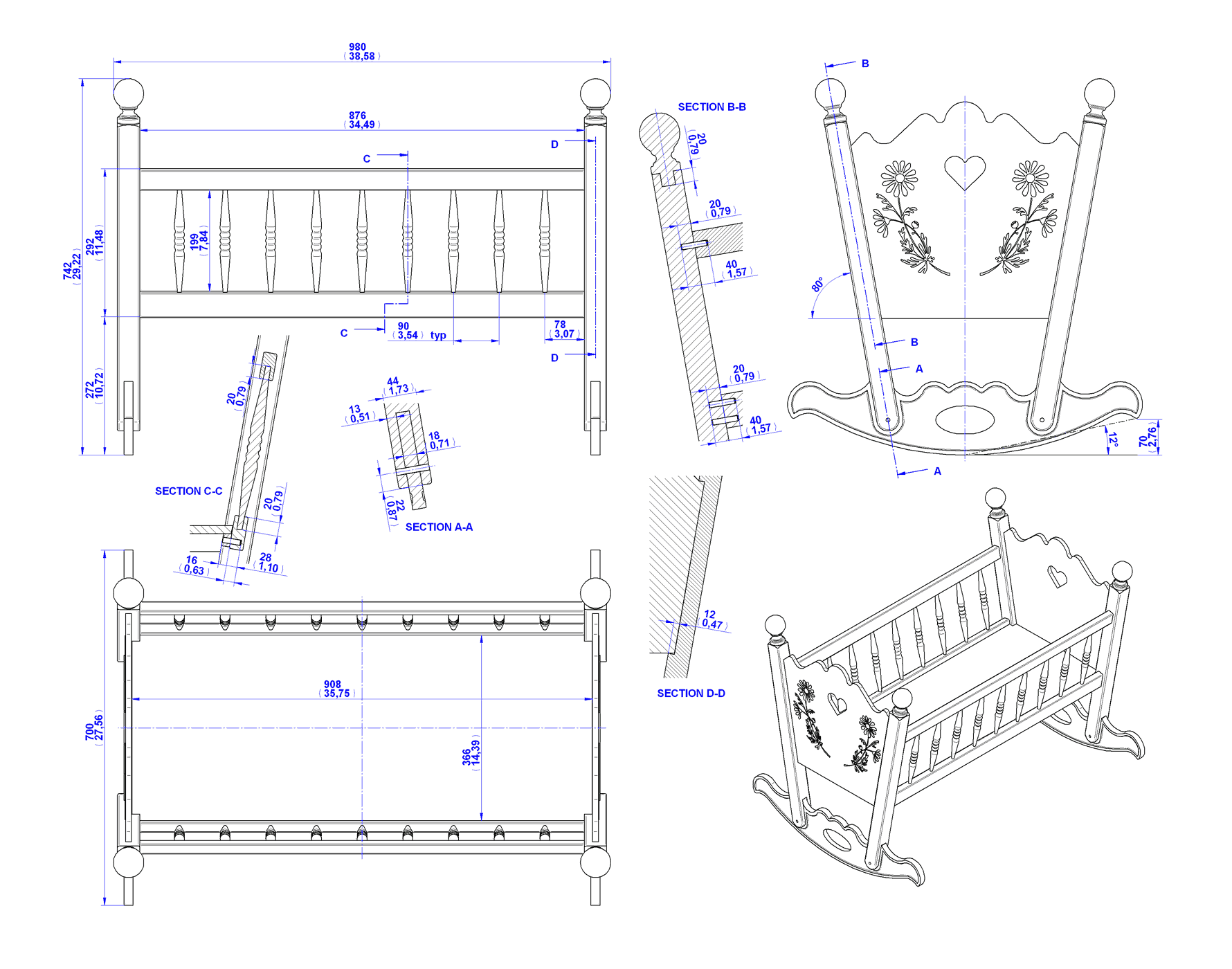 Формально родители меняют ребенку спальное место как минимум два раза: детская деревянная кроватка уступает место полноценной подростковой кровати примерно на третьем-четвертом году жизни. Предлагаем готовый проект базовой конструкции, на основании которого детская кровать своими руками может быть исполнена в любом дизайне и размере, при внесении минимальных изменений в чертеж.