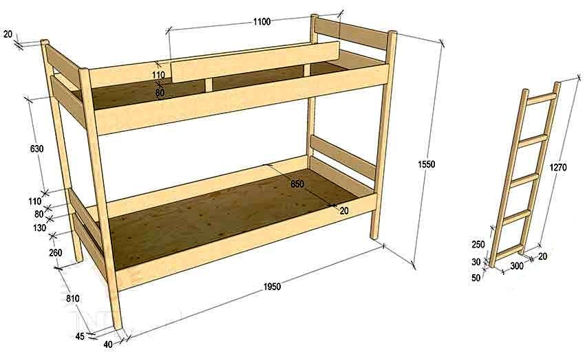 чертежи и схемы, как сделать двухъярусную кроватку, инструкция по изготовлению, фото и видео-уроки, цена