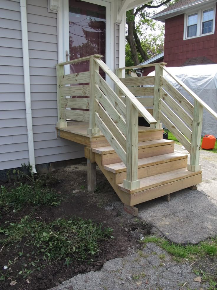 - Так как это крыльцо имеет ширину 12 футов, вы можете использовать 12-футовые обработанные под давлением доски длиной 12 футов, укладывая их по всей ширине без перерыва.