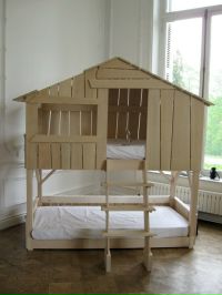 На первом этаже малыш будет проводить время за играми, а на второй ярус взбираться по лесенке для отдыха. Обычно процесс подъема на второй этаж доставляет детям большое удовольствие. Если ребенок любит рисовать, на первом этаже можно поставить небольшой столик и стульчик. Для двоих детей делается обычная двухъярусная кровать. В конструктивном плане такие изделия оформляются по-разному. Нижний этаж может находиться точно под верхним ярусом, либо располагаться перпендикулярно.