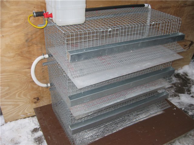 Для удобства уборки под клетку устанавливается щит для задержания помета. Для экономии места кормушки устанавливаются снаружи, а поилки чаще всего представлены ниппельной системой.