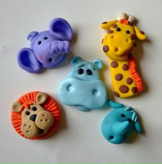 В изготовлении следующих игрушек нам тоже помогали шаблоны. Не нужно быть скульптором и даже не нужно иметь хороший глазомер, чтобы лепить круглых зверят, похожих на мультяшных смешариков. Чтобы делать ровные окружности, мы пользовались обычной рюмкой (было похоже, будто мы лепим пельмени), ей же мы раскатывали, как тесто, глину, из которой потом и вырезались детальки.