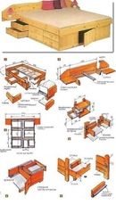 Кровать-трансформер своими руками сделать тоже можно, но посложнее. Вы можете создать дизайн, перейдя с кровати на стол или в шкаф. В продаже также есть многоярусные кровати-трансформеры для детской (меняется количество кроватей).Самый простой способ сделать прикроватный столик. Это конструкция из каркаса, листа фанеры и ножек. Чистая постель с матрасом и столиком. Оригинально будет смотреться этот трансформер круглой формы. Приобрести матрас для кровати нельзя, но можно сделать своими руками пенопласт.