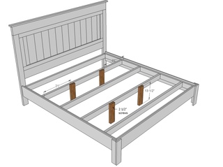 Обязательно укрепите его по всей длине. В остальном ваша деревянная кровать, сложенная руками, долго радует своей надежностью. Для крепкого кузова недостаточно четырех балок. Параллельно основанию кровати (спинку и изголовье) укрепим три, равномерно распределив их по длине прямоугольного каркаса.