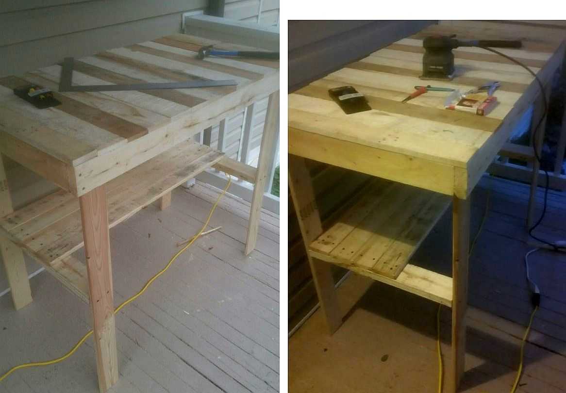 Собрать рабочую поверхность не сложно – гораздо трудней привести ее в презентабельный вид. Для этого необходимо хорошенько прошлифовать, отполировать поверхность, а затем немного закруглить углы и придать необходимую форму изделию;