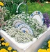 Старая посуда, чайники могут послужить горшочками для цветов. Старый унитаз, умывальник и даже ванна станут оригинальной и креативной клумбой для цветов.