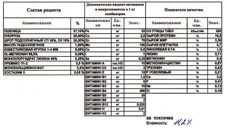 Корм в виде крупки 3 х 3 мм. Состоит из пшеницы, соевого масла, соевого и подсолнечного шрота. В составе также – фитаза, мультиэнзимный и витаминно-минеральный комплексы, антибактериальный препарат.