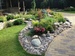 Клумба с применением камней в центре участка формирует собственный уголок для отдыха, который вполне способен заменить, например, беседку