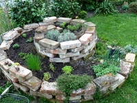 Для последующей кладки может быть использован раствор. Если клумба будет из камней и цемента, в её нижнем слое следует предусмотреть дренажные отверстия. Кроме того, цемент необходимо использовать только с внутренней поверхности камней, чтобы снаружи сохранялся эффект сухой кладки.