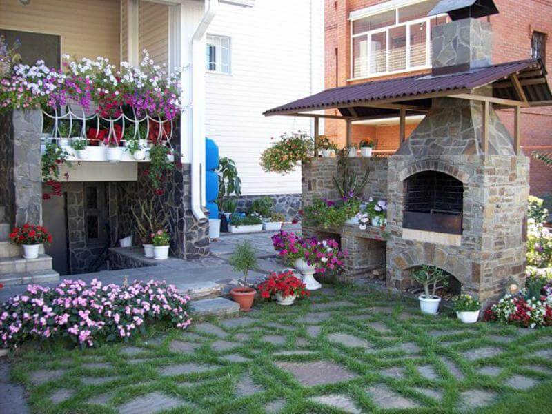 Если вы любите приглашать к себе гостей и устраивать пикники, предусмотрите место для мангала. Ставьте его подальше от дома, в дальнем углу двора, чтобы дым и жар от огня не проникал в открытые окна дома.
