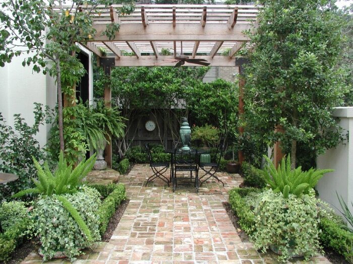 1. Двор частично придется «замостить» — отделать плиткой или натуральным камнем. Это необходимо для обеспечения чистоты на миниатюрном участке, на котором просто негде делать дорожки.