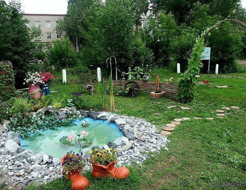 Посмотрите на фото, как красиво небольшой водоем вписывается в дизайн участка.