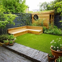 После монтажа газон нужно обильно поливать в течение недели. За это время травка хорошенько укоренится, а стыки между полосами станут незаметны. Использование рулонного газона позволяет создать очень красивый дизайн и превратить свой двор в настоящее произведение дизайнерского искусства (фото).