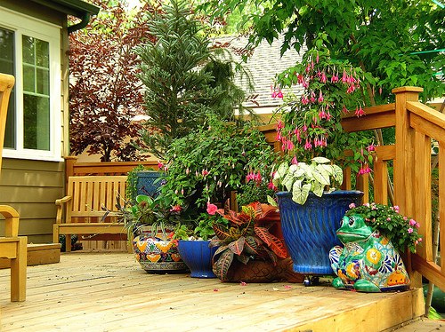Вы также можете добавить всплеск цвета в виде цветов или листвы, разместив их на террасе, патио, у входа или на грядке для растений.