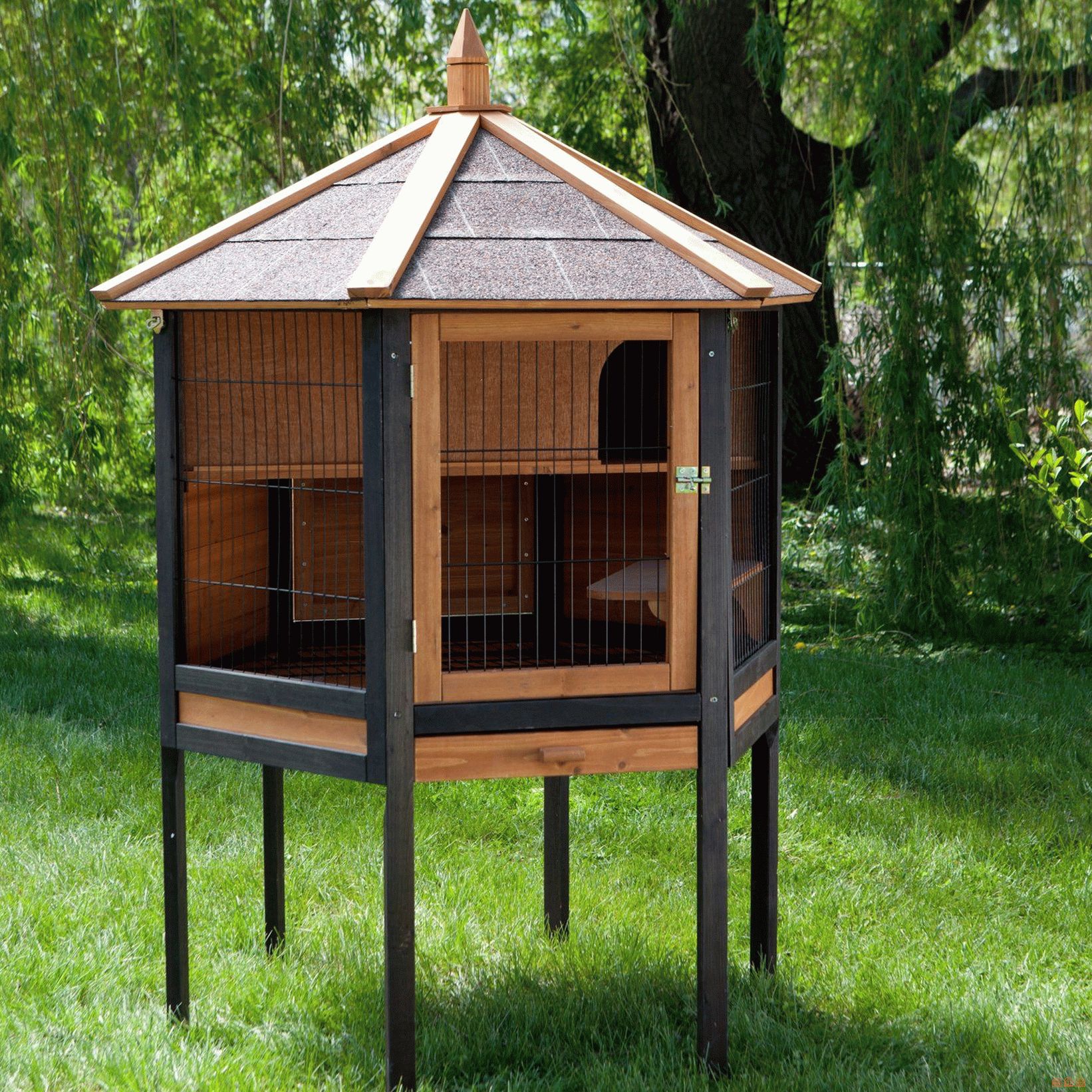 Столбы 4×4 обеспечат надежную опору вашей клетке и удержат ее над землей, вдали от хищников и других вредителей. Старайтесь располагать клетку на высоте 3–4 фута от земли.