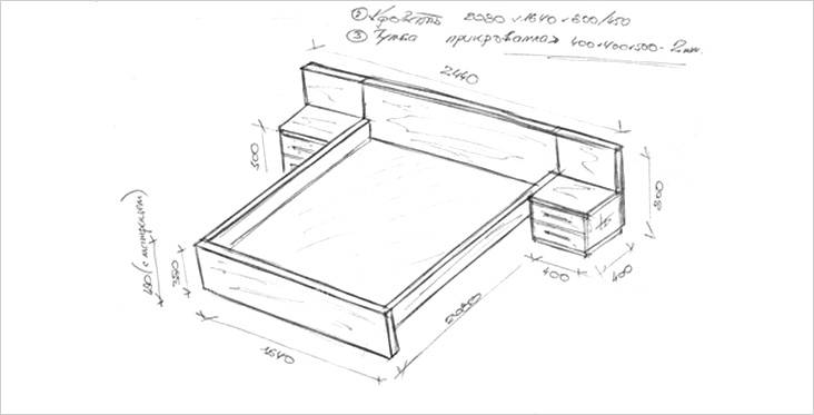 ВНИМАНИЕ! Обязательно сделайте чертеж. Учтите размеры вашего матраса. Они могут не соответствовать приведенным ниже.