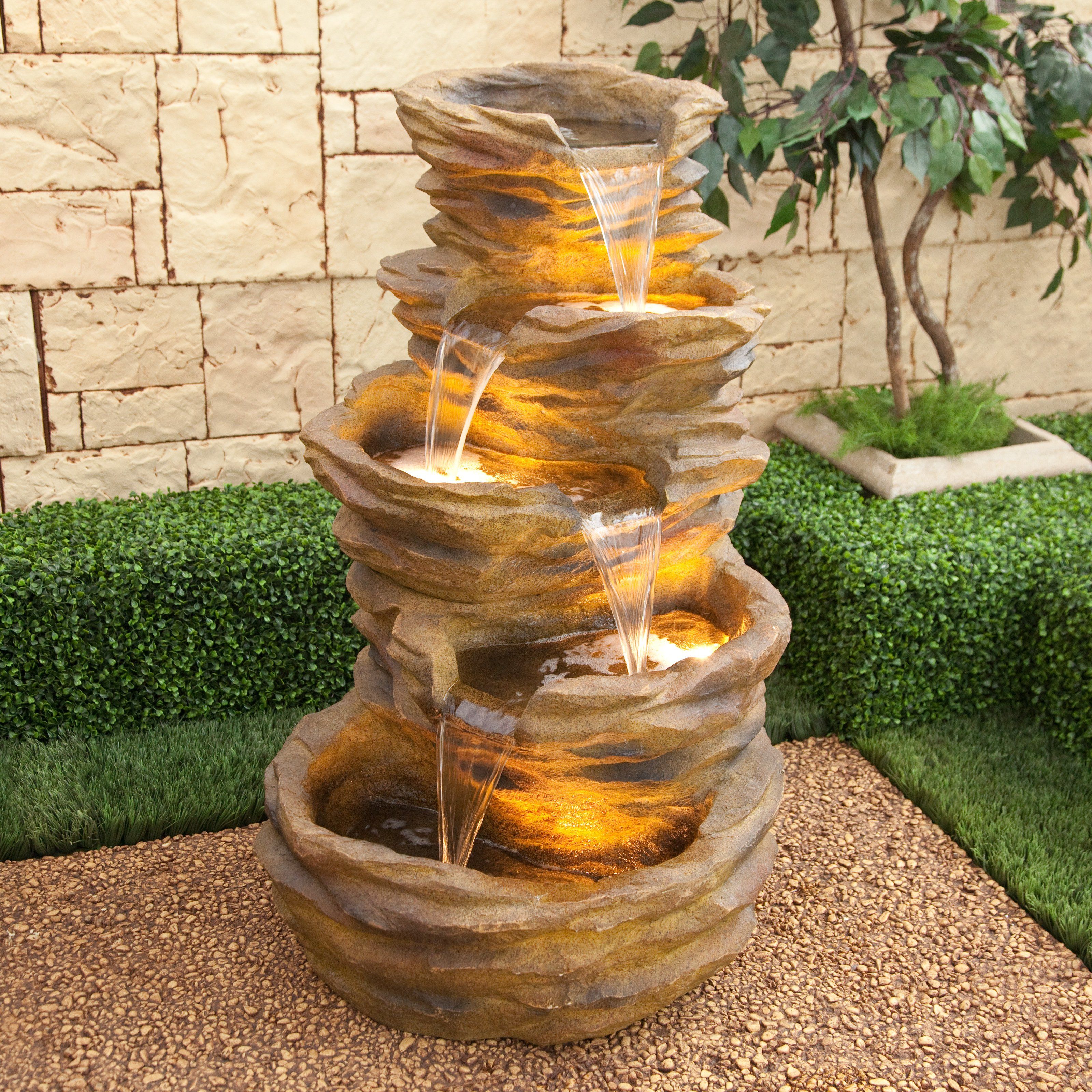 Чтобы домашний фонтан был красивым, стоит сделать несколько порогов с углублениями.