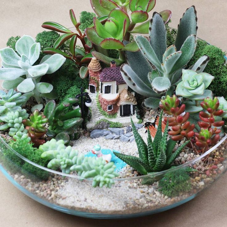 - Для сказочных садов: украсьте сад мини-дорожками, заборчиками, домиками, сохраненным мхом или предметами по вашему выбору.