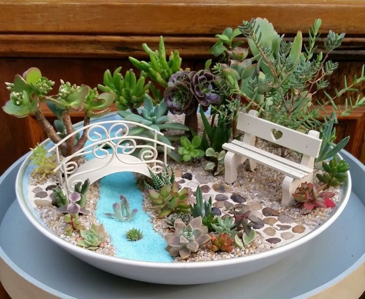 Использовать декоративные миниатюрные сады можно по-разному. Они могут выступить центральным украшением ландшафтного дизайна, занимая почетное место в парадной зоне участка, или ненавязчивым дополнением к зеленым композициям в саду. Благодаря небольшому размеру такой элемент декора можно расположить практически в любом месте сада: на крыльце дома, вдоль дорожки и возле небольшого пруда.