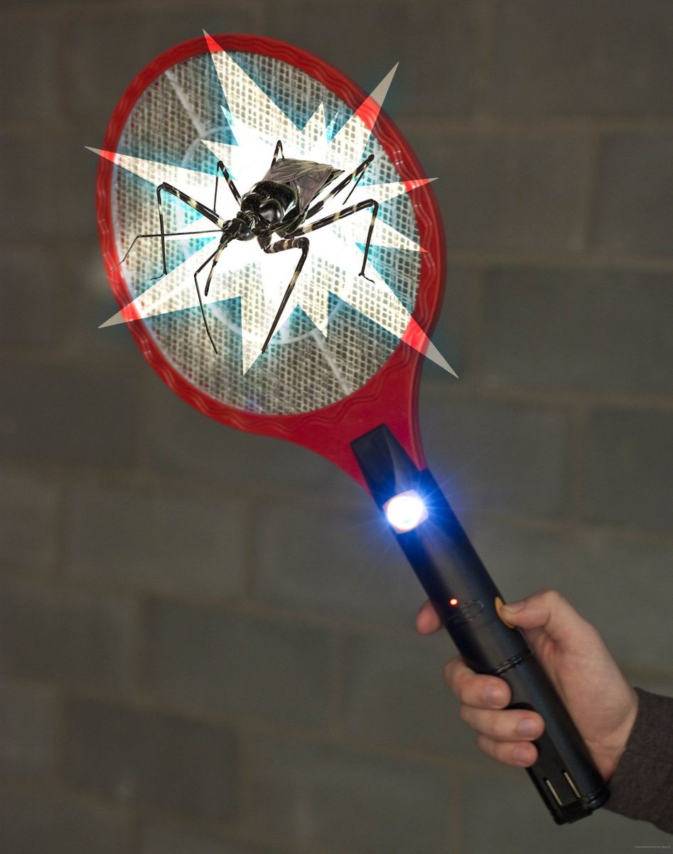 4. Электрические мухобойки. По форме соответствуют ракетке для игры в большой теннис. Отличие лишь в том, что на металлическую сетку в них подается напряжение, которого не выдержит даже самая большая муха. Увидели вредителя — включите электрическую мухоловку и помахивайте ею так, чтобы насекомое коснулось сетки.