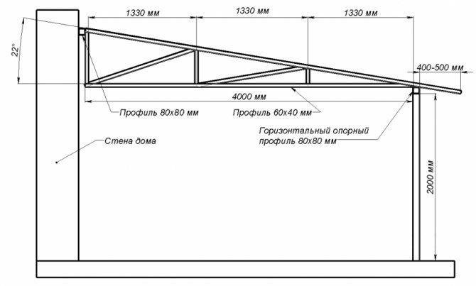 Будем строить простую металлическую конструкцию с односкатной крышей и поликарбонатной кровлей.